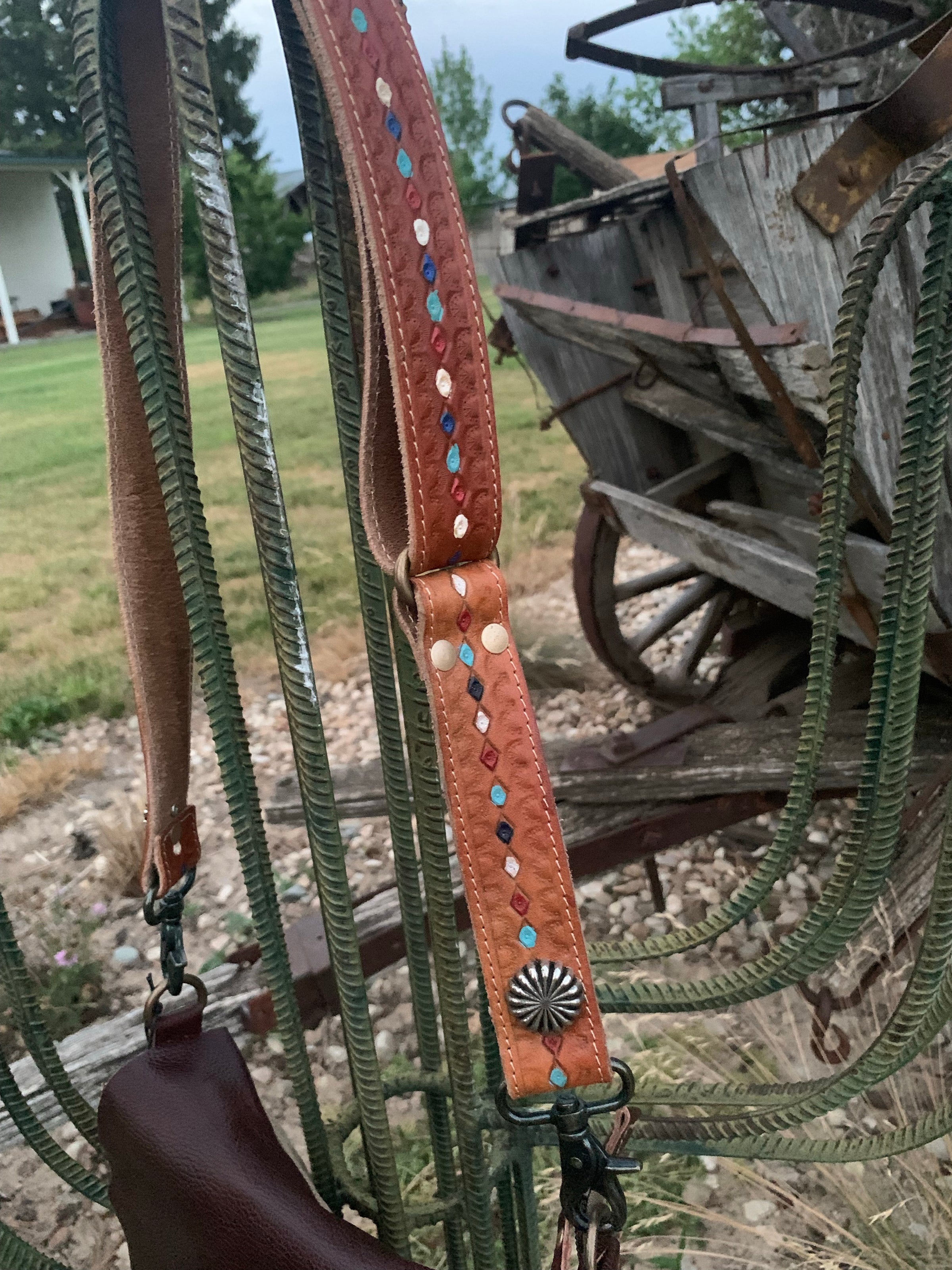 This Amazing Fun Colored Concealed Carry Crossbody bag is beautiful. Has so much detail with a hand tooled adjustable belt strap. Multi zipper concealed carry compartment on back with pistol holder included. Top zip closure with inside zipper as well.
