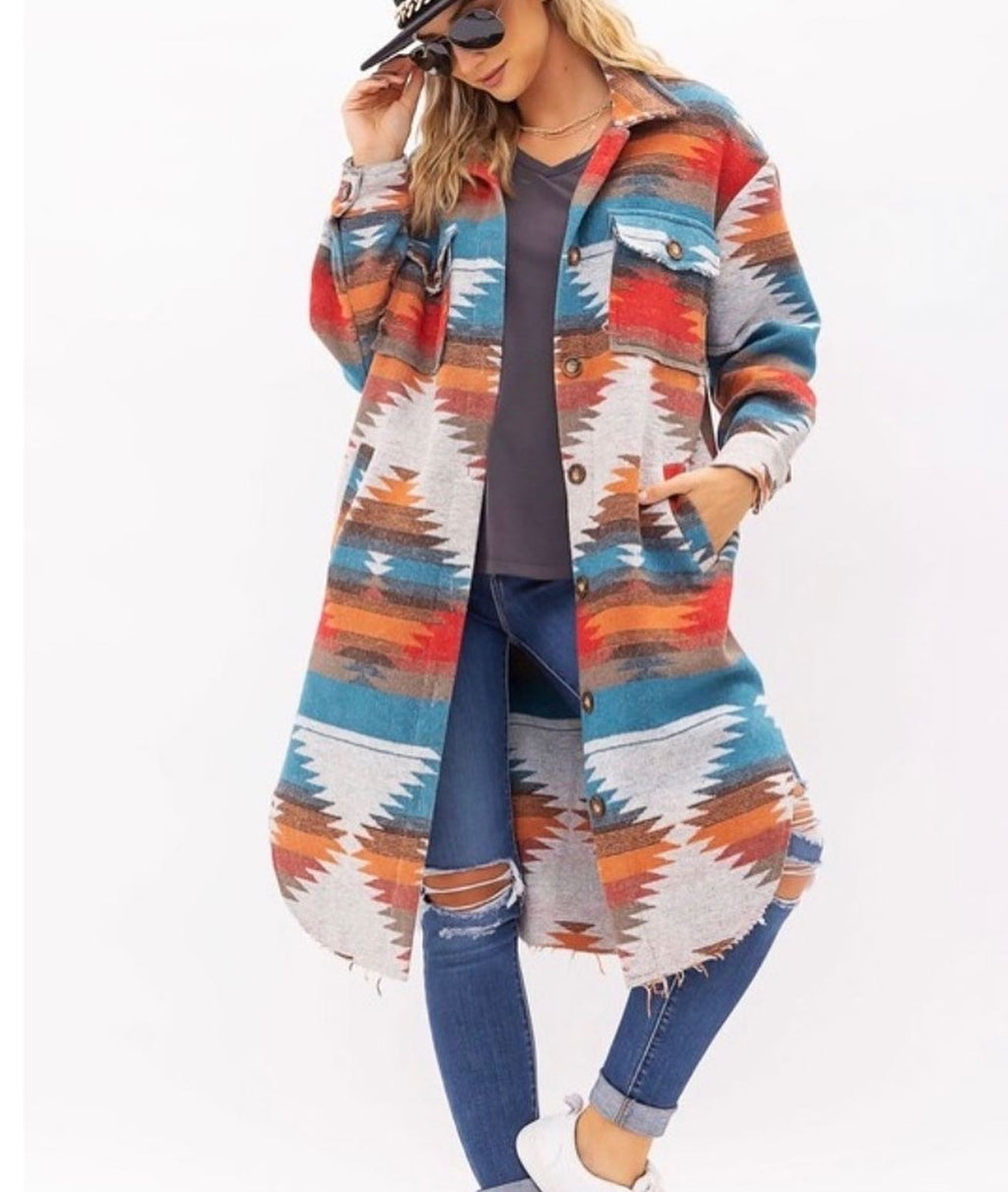 Isabel Aztec Long Sleeve W/ Turquoise Graphic